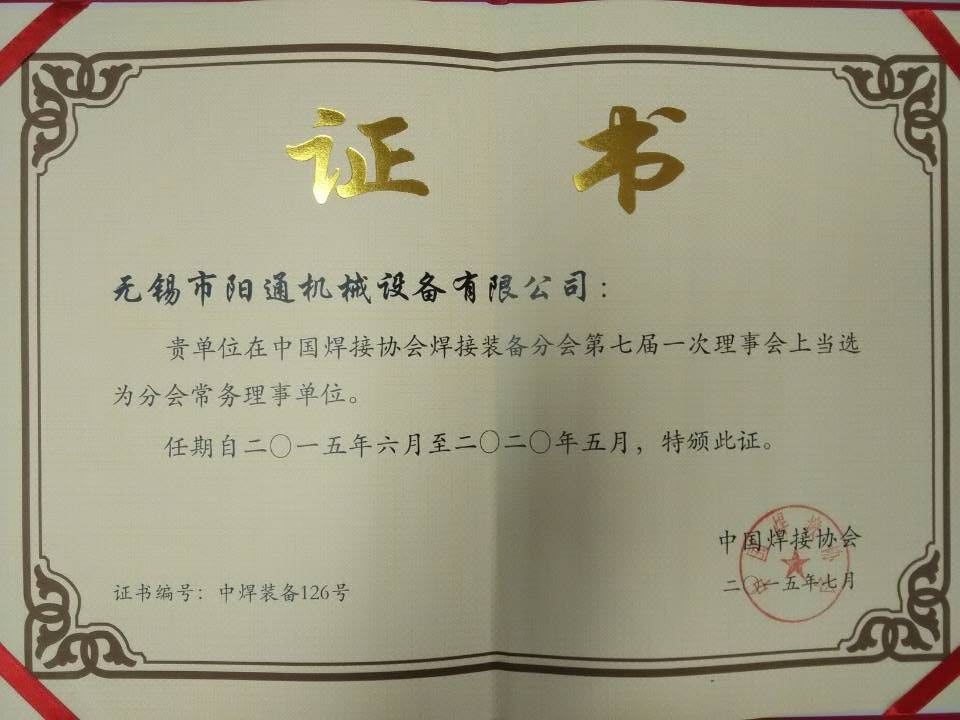 Warm congratulations to Wuxi Yangtong Machinery Equipment Co., Ltd. for re-election as the executive director of the welding equipment branch of China Welding Association