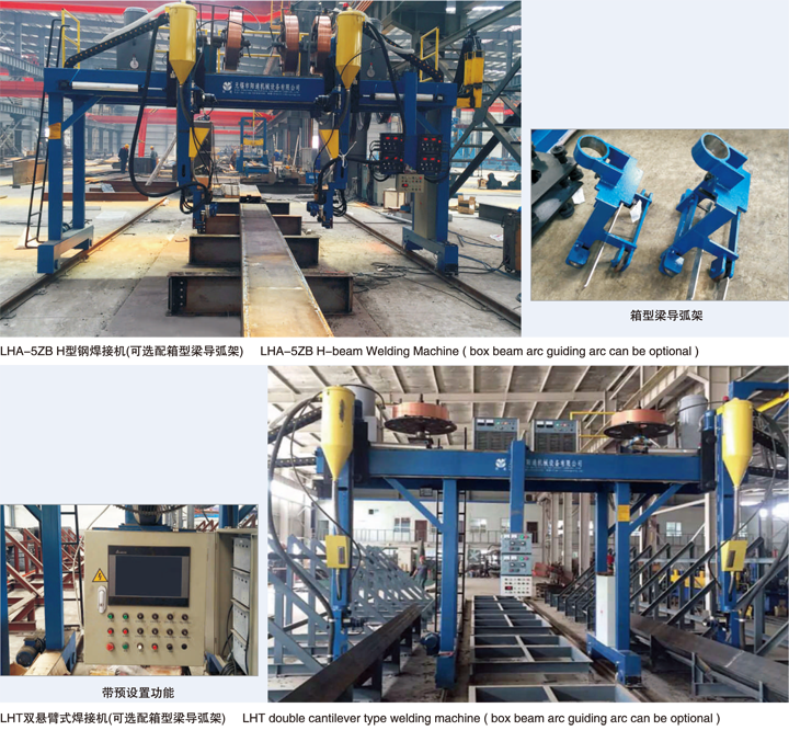 It is divided into LHA Grantry type,LHT double cantilever type and LHC cantilever type.LHA gantry type has middle control and side control two types for options.It adopts A.C variable frequency control to realize back and forth welding.It has stable and reliable working and simple and convenient operation.Special designed arc guiding rack can satisfy the weiding requirements of smal l H-beam and star/cross beam.