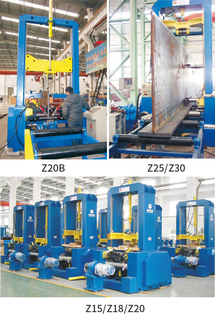 This series is composed of many models. Clamping of flange and web adopts hydraulic automatic centering. Compared with the products with the same specifications, Z20B has larger suitable ranges and better performance to price ratio. There are four groups of web clamping roller front and back arranged and adopts up and down two layer combinable structure. It can rectily the web bending. Better positioning accuracy by means of multi-groups of guiding roller and eliminate the fishtailing phenomenon.