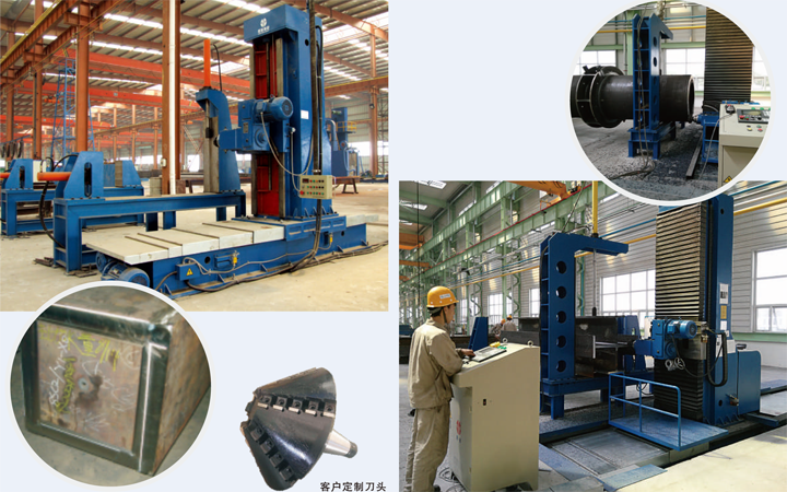 This machine is used for milling the end face of H-beam, box-beam and cylinder. The milling head is 0-45 degree adjustable so as to mill the required bevels of end face of beams.